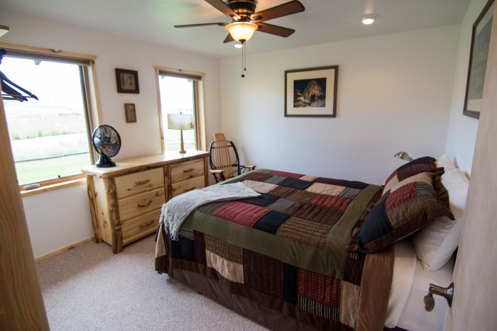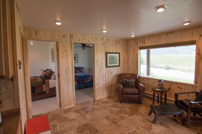 The Blue Quill cabin has been a favorite on the Ranch for many years. Within walking distance of Glenmora Lodge, the Blue Quill has been recently updated: It now features a large covered patio overlooking the Rio Grande, with spectacular views of the La Garita Mountains. Its master bedroom features a queen bed and the second bedroom has 1 full size bed. The Blue Quill also has a full bath, a full kitchen with a breakfast area, and a sitting area. This cabin has a rustic charm yet offers the comforts and convenience of new furnishings, fixtures, and appliances. The Blue Quill is well suited to couples and families of up to 3 anglers.
